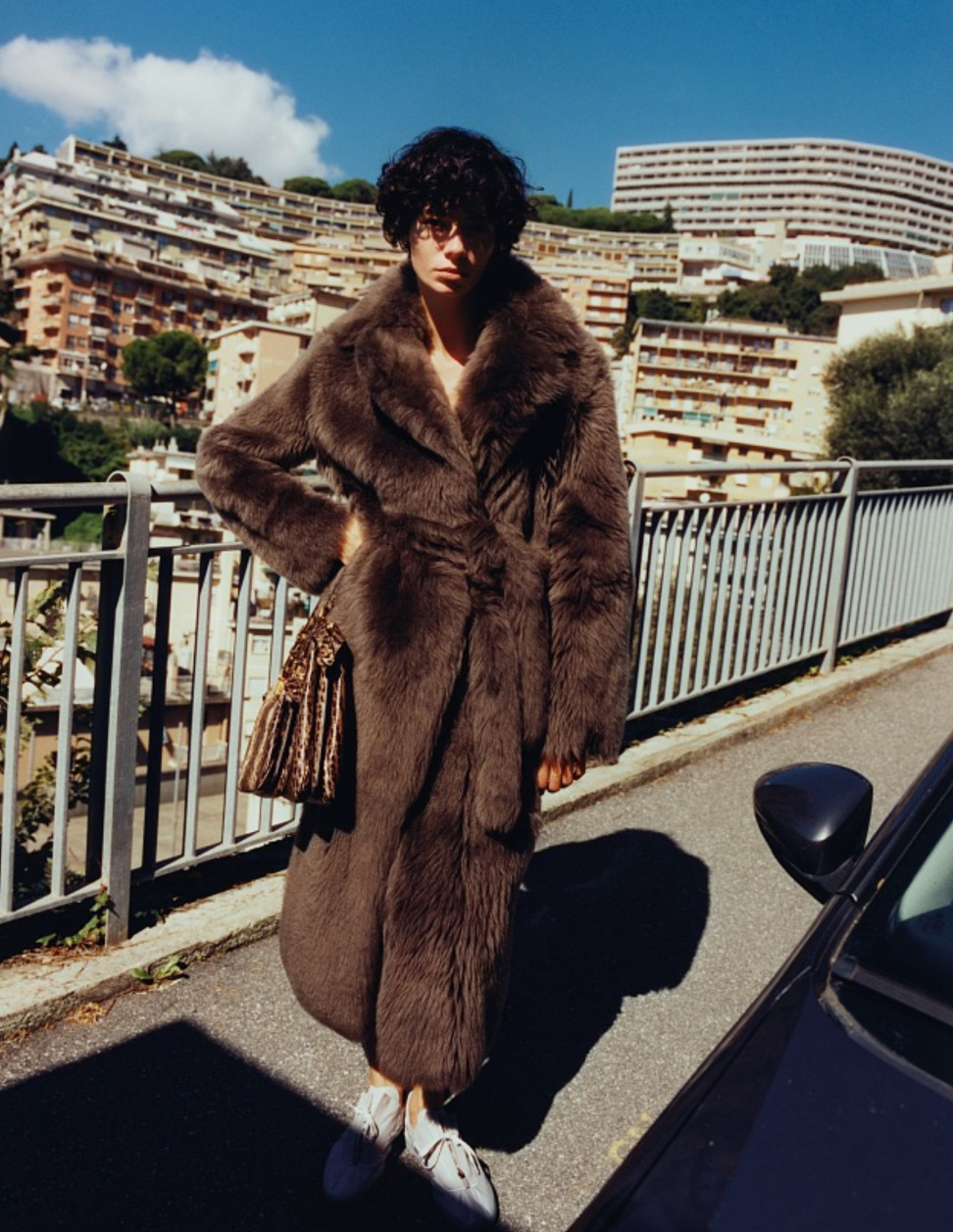 Tagliatore eco fur jacket  featured on the cover of Collectible Dry. Styled by Ilaria Norsa, photographed by Simone Cossettini.